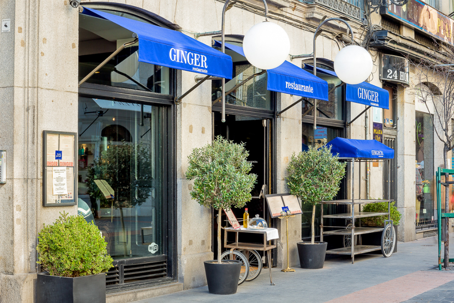 En el corazón de Madrid, en el edificio de los antiguos almacenes Arias se encuentra Ginger, un restaurante con un look muy chic y un cierto aire retro, muy de moda entre los locales y siempre lleno de vida.
